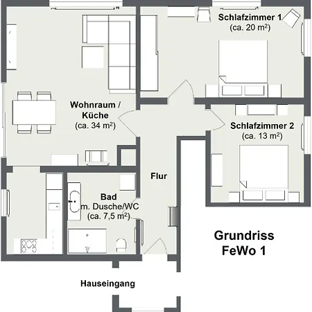 公寓有1间卧室. Ferienwohnung "Haus Am Weifberg" Hinterhermsdorf设有1间洗澡间,配备分开的洗手间 和淋浴.